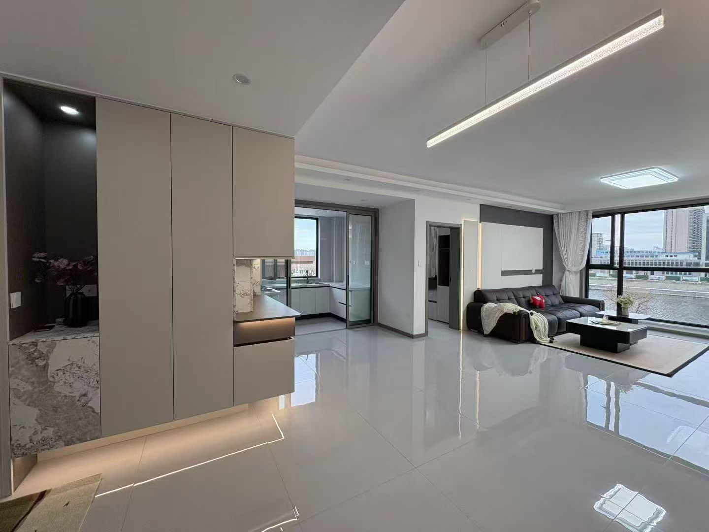 新出房源四季阳光**一套东边户河景房401精装修7层电梯洋房,直接拎包入住,132.5平方4室2厅2卫赠送27.93平储藏室,另送地下车位一个,仅售59.8万,一手网签支持各种贷款,随时看房